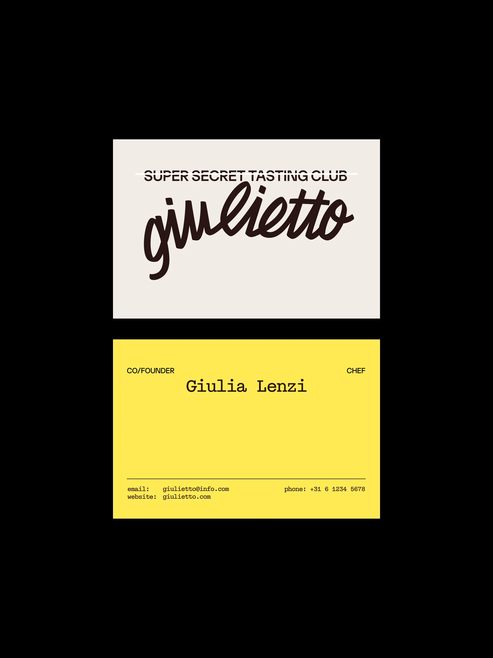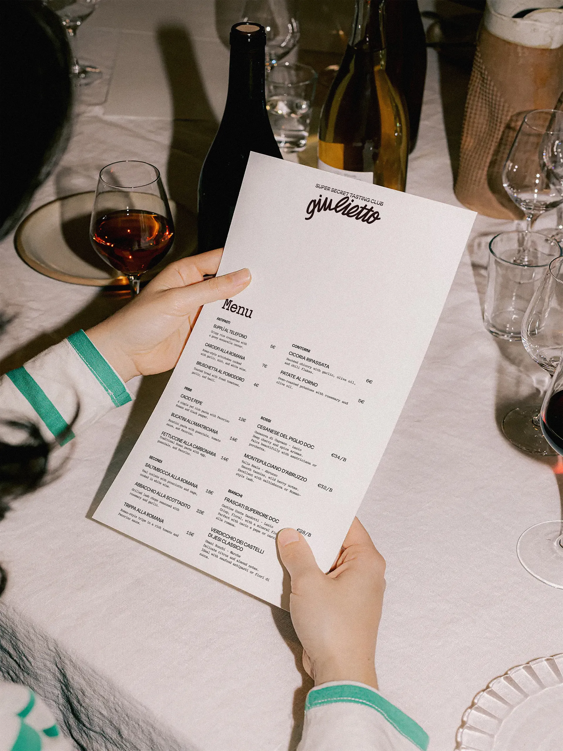A dream hidden in the drawer between the cutlery, a whispered project because it is too important and has very big ambitions.A club that starts spontaneously in a studio apartment with a dinner with friends who love Giulia's cooking and who would support her in all her projects. Giulietto Super Secret Club is a branding for Giulia, an aspiring chef who organizes dinners and workshops on her journey of culinary experimentation and research. Her dream is to have her own restaurant.